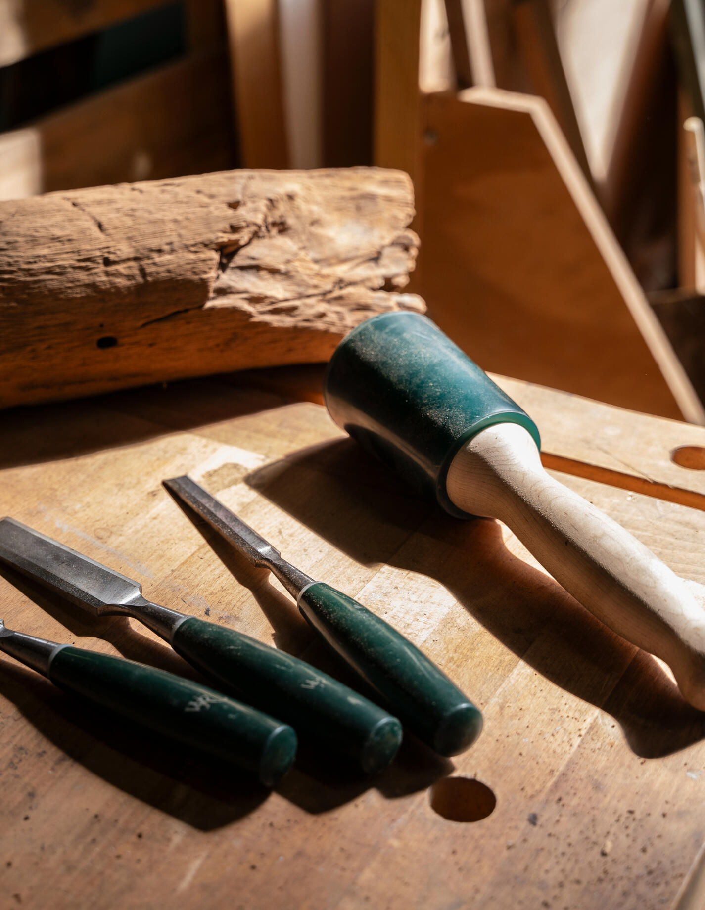 Working primarily with local woods such as mahogany, cedar, and tamarind, I prioritise environmentally conscious finishes like oils and shellac. I mill and dry wood in-house to ensure the highest quality and minimal environmental impact.